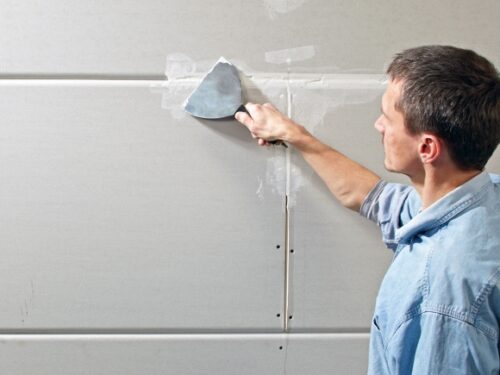 - Szpachlowanie połączeń między płytami oraz przygotowanie powierzchni pod malowanie.